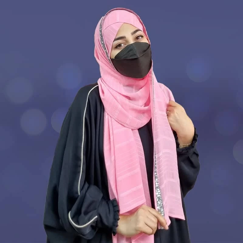 ✔ هد از جنس پارچه پارچه کرپ حریر میباشد که کشسانی ندارد و شال از جنس کرپ حریر با تراکم می باشد.