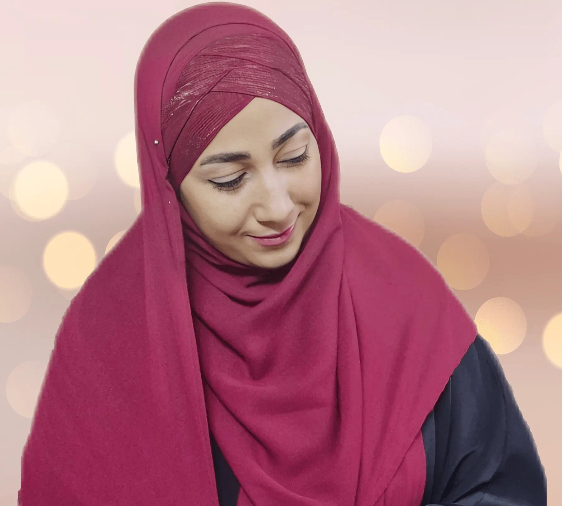✔ هد از جنس پارچه حریرشاین و شال از جنس کرپ حریر با تراکم می باشد